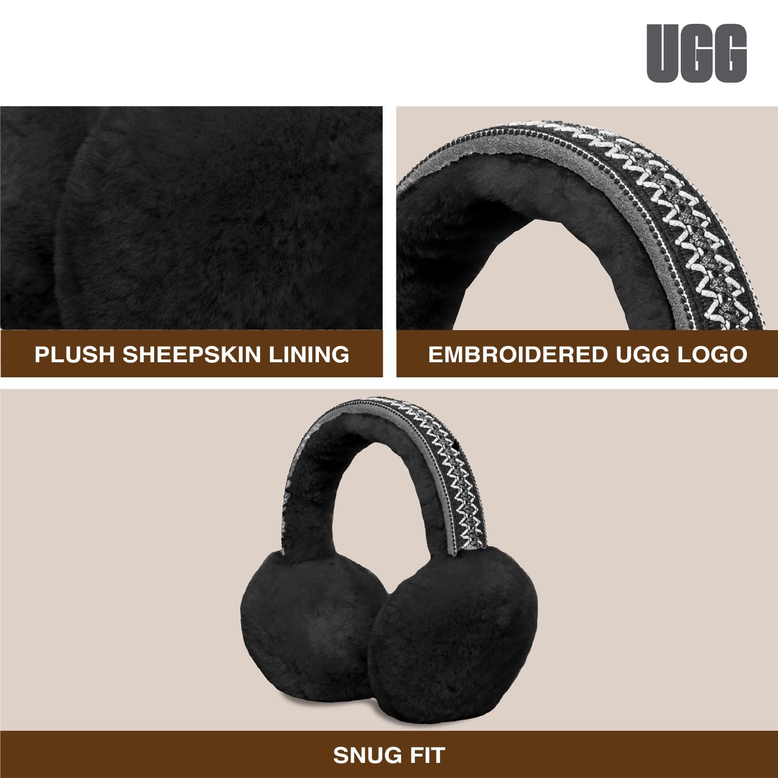 UGG Tasman Sheepskin Earmuffs for Women, Soft Genuine Shearling Ear Warmers