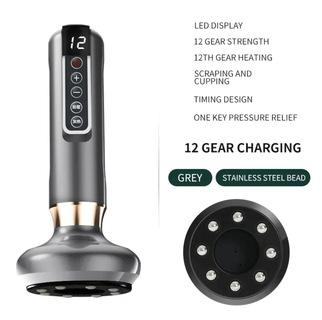 Enhance your wellness routine with this electric cupping and Gua Sha massage device, designed to reduce cellulite, improve circulation, and promote fat burning. Combining adjustable suction and heated massage, it mimics traditional therapy techniques to relieve muscle tension and stimulate lymphatic drainage. The ergonomic cup design glides smoothly over the skin, making it perfect for use on the back, thighs, arms, and waist. Ideal for home spa sessions, this all-in-one slimming and massage tool supports a healthier, toned body.